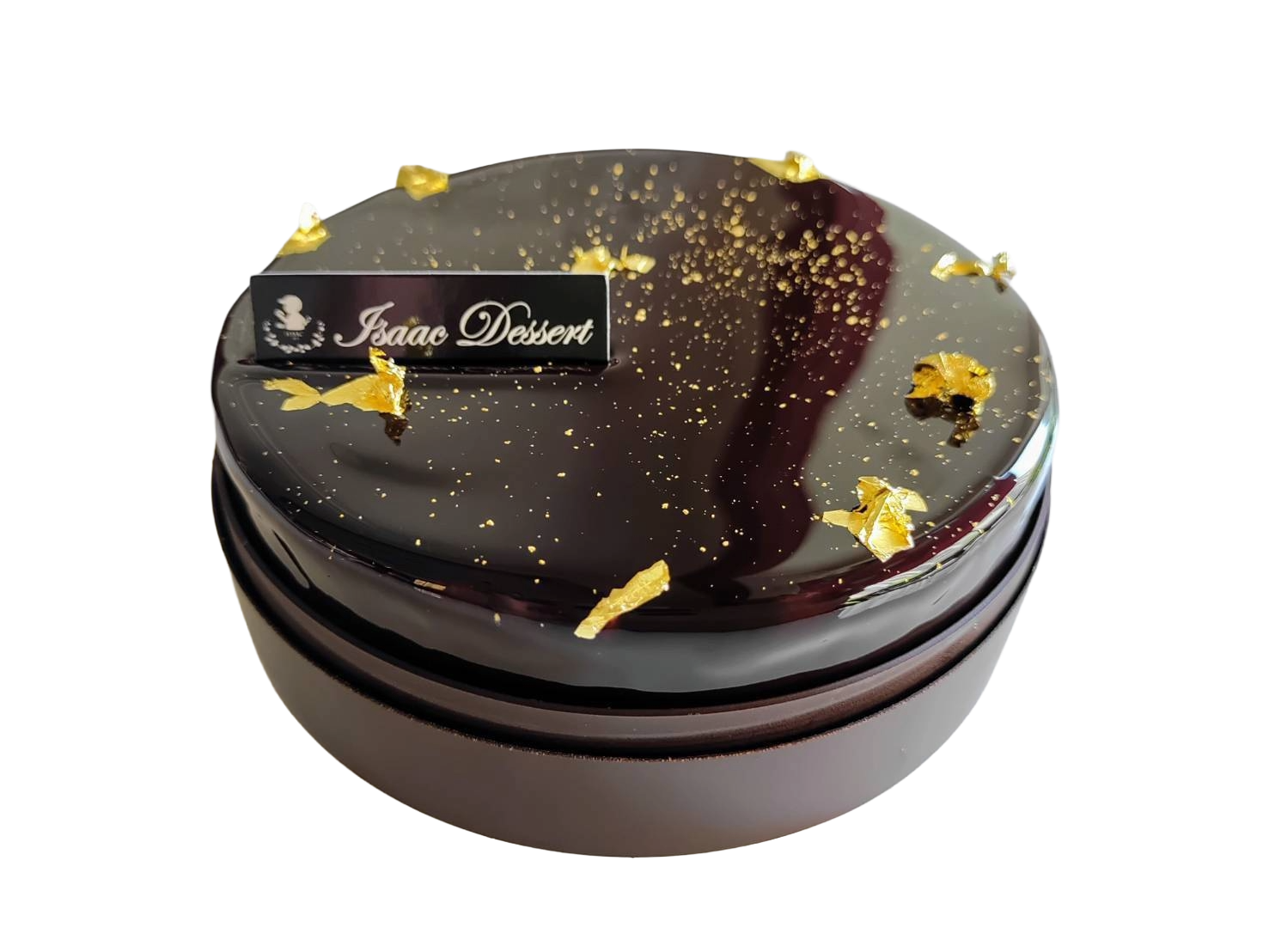 - 75%比利時巧克力慕斯,內層天然覆盆子果泥製作的果凍,底層為堅果脆皮,最後上方用金粉點綴。
