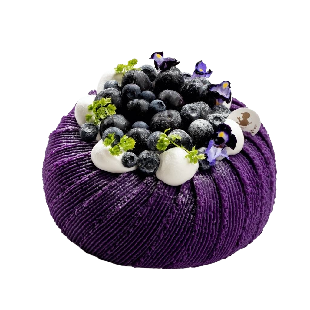 - 台農57號紫地瓜帶有芋頭香氣,每日手工磨泥拌入本店招牌戚風蛋糕當夾層。